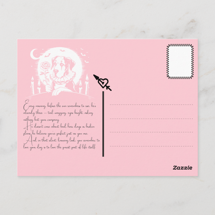Some postcards are just pretty pictures. This one is different: it carries a whole little story about what it means to love your dog, ready to be sent with almost no extra words from you.