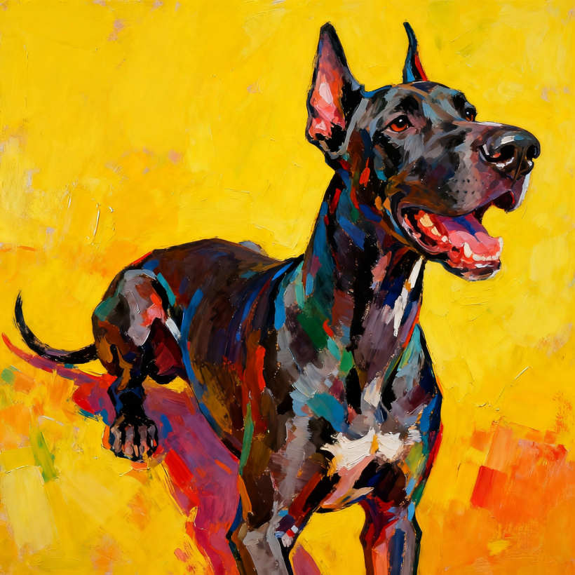 Deutsche Doggen haben ihren festen Platz in der Kunstgeschichte erobert - nicht als bloße Zuchtobjekte, sondern als lebendige Inspirationsquelle für Künstler aller Epochen. Von den aristokratischen Porträts der Renaissance über die emotionalen Charakterstudien des 19. Jahrhunderts bis hin zur bunten Pop Art und rebellischen Street Art der Gegenwart - diese majestätischen Hunde bleiben ein unerschöpfliches Motiv für kreative Auseinandersetzung.